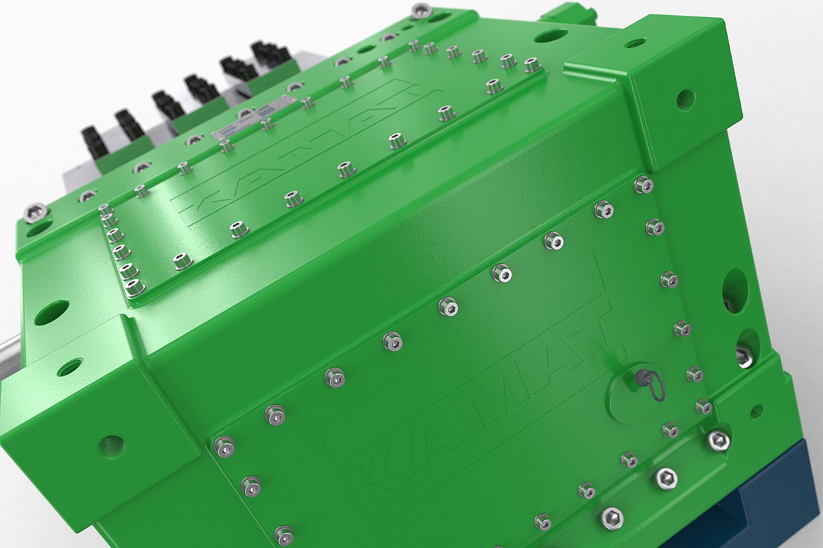 K35000高壓泵的驅動功率為350 kW,非常適合噴射和液壓應用。 例如,它經常與大型移動式噴射系統一起使用,已在化工行業服務多年,并在采礦行業滿足流量從400至600 l升/ 分鐘的需求。 在這種情況下,帶有強制潤滑齒輪和油冷卻器的K35000可以滿足24/7全天候運行的要求。 K35000高壓泵采用經典的KAMAT模塊化組件系統構建,因此可以靈活地適應工作壓力和介質等要求。 因此,它也經常用于過程處理領域。