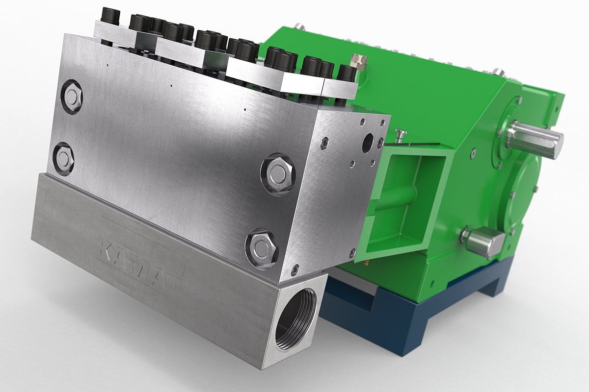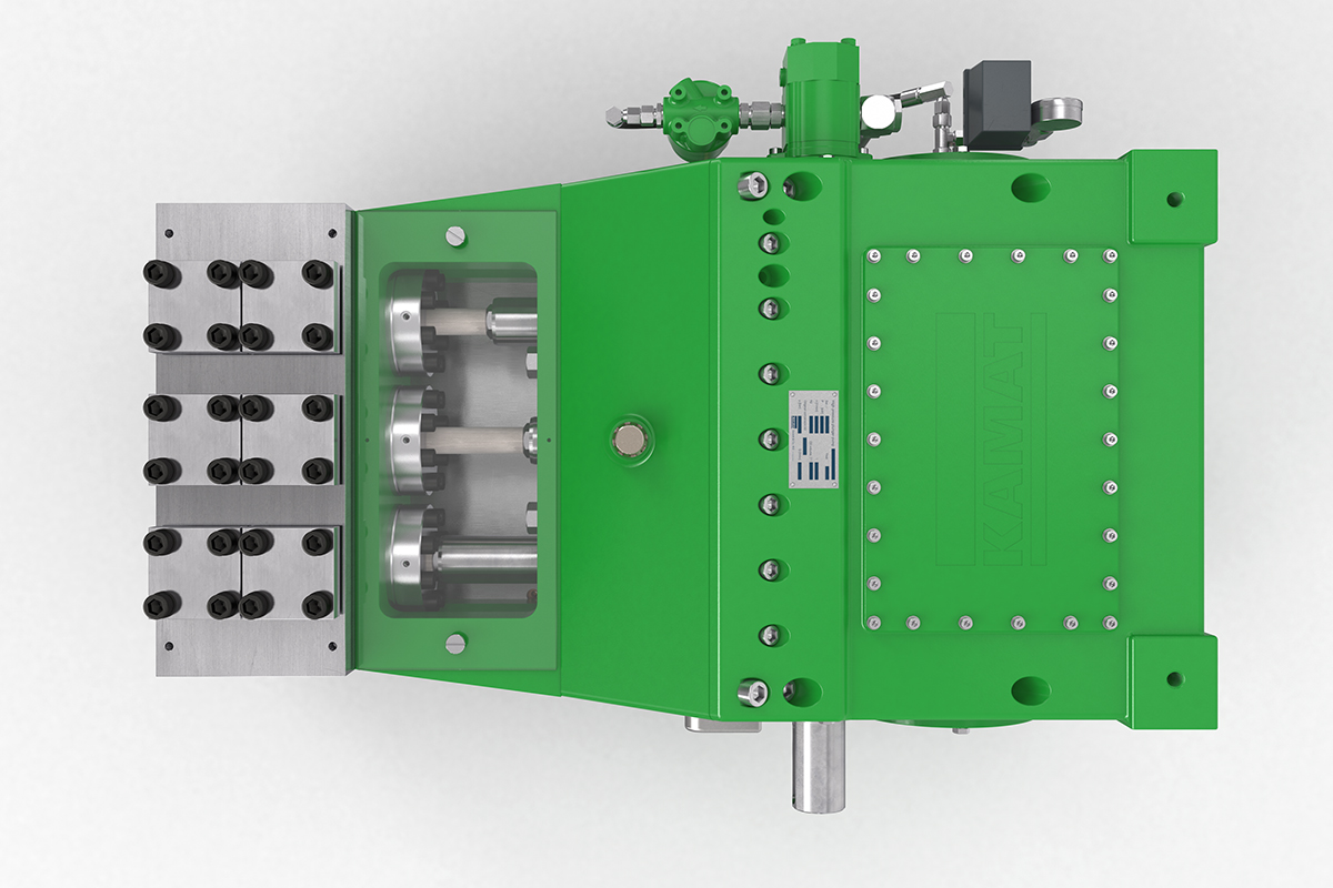 K35000高壓泵的驅動功率為350 kW,非常適合噴射和液壓應用。 例如,它經常與大型移動式噴射系統一起使用,已在化工行業服務多年,并在采礦行業滿足流量從400至600 l升/ 分鐘的需求。 在這種情況下,帶有強制潤滑齒輪和油冷卻器的K35000可以滿足24/7全天候運行的要求。 K35000高壓泵采用經典的KAMAT模塊化組件系統構建,因此可以靈活地適應工作壓力和介質等要求。 因此,它也經常用于過程處理領域。